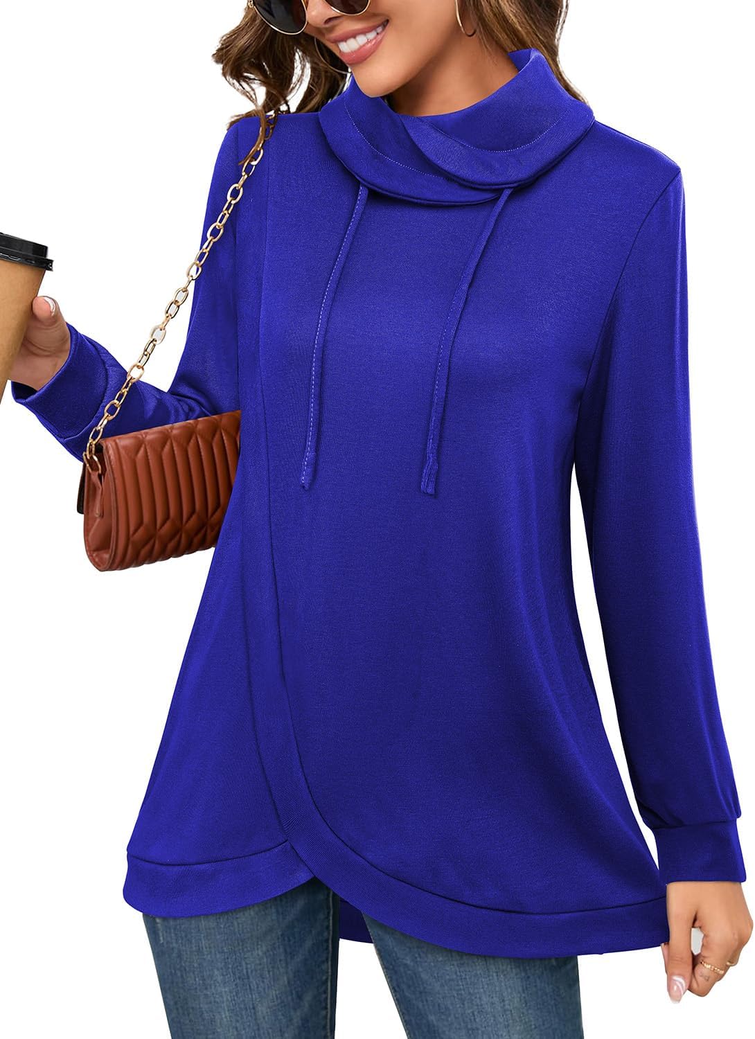Bulotus Tunic Sweatshirt for Women 2025 Fall Winter Cowl Neck Long Sleeve Tops Pullover Tulip Hem Drawstring Trendy
