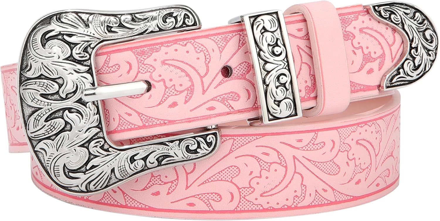 AWAYTR Kids Western Belt for Girls - Vintage Cowgirl Leather Belt for Jeans Dresses
