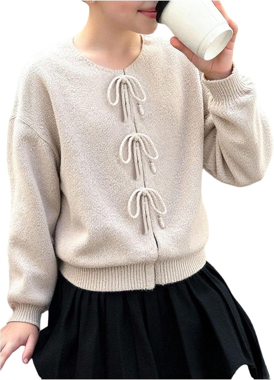 WDIRARA Girl's Tie Front Cardigan Sweaters V Neck Long Sleeve Knit Outerwear