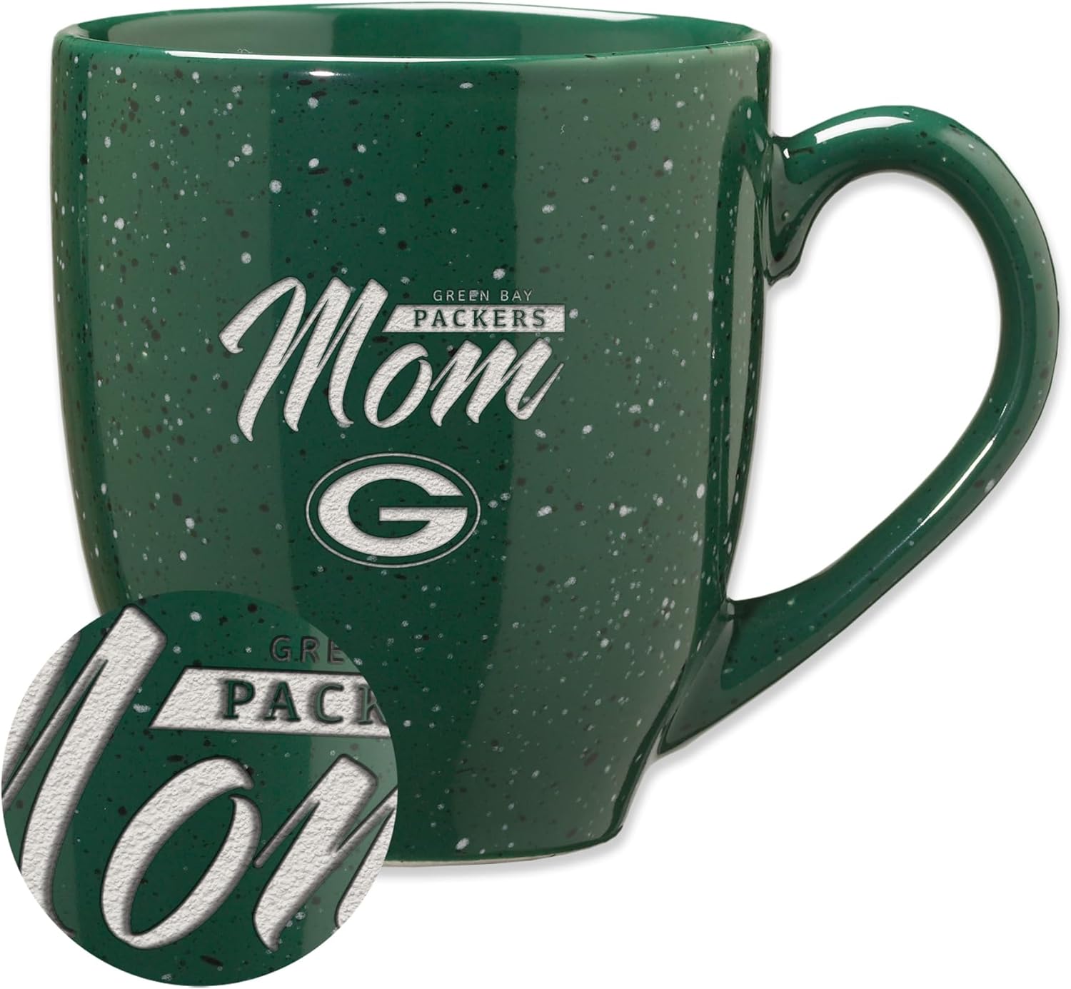Rico Industries NFL Football Mom Red 16 oz Team Color Laser Engraved Speckled Ceramic Coffee Mug