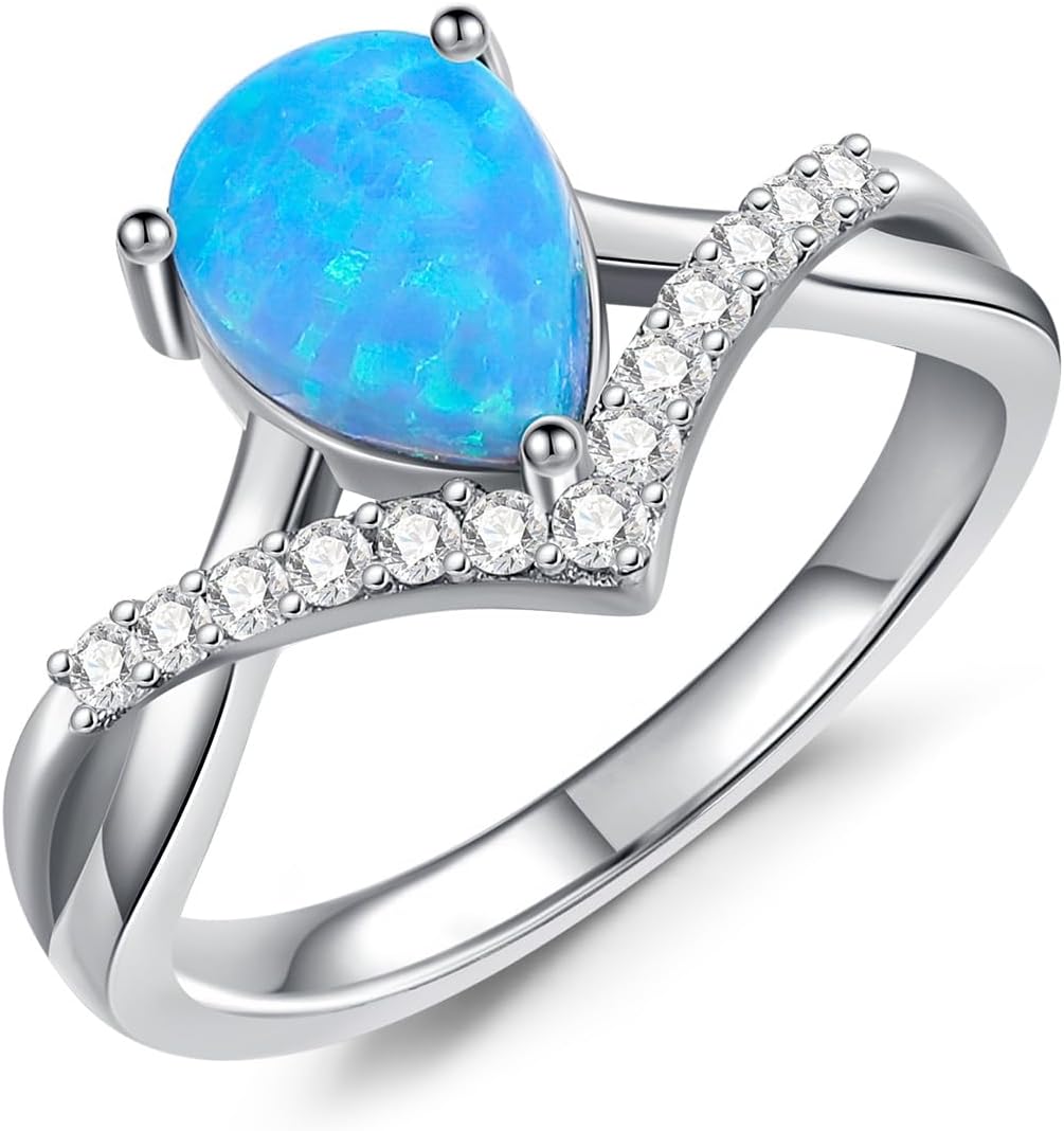 925 Silver Blue Pear-Cut Opal Ring with Moissanite-Staggered Arm Design Ring Statement-rings Opal Jewelry Gifts for Women Her