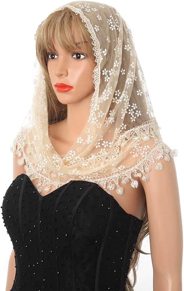 Floral Church Veils Lace Wedding Scarf Chapel Tassel Mass Tulle Head Covering Bridal Mantilla Veil for Women