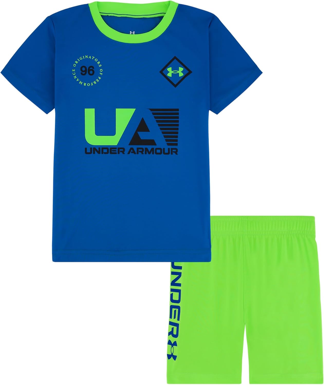 Under Armour Boys' 2-piece Short Sleeve Graphic T-Shirt and Shorts Set, Lightweight & Breathable, Royal Tech Soccer, 2T