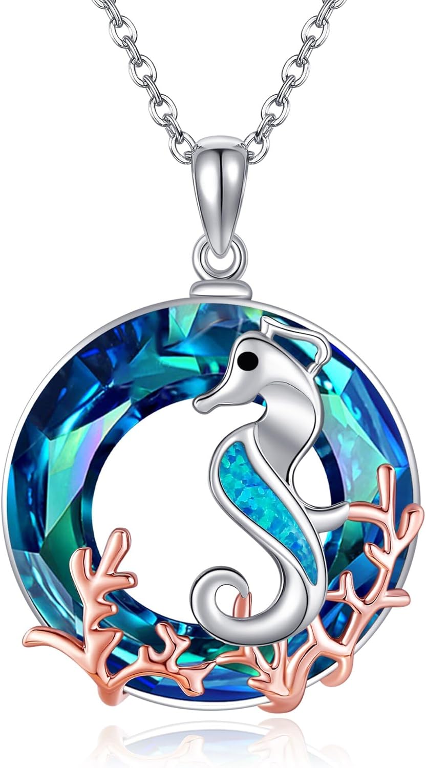 Seahorse Necklace 925 Sterling Silver Crystal Seahorse Pendant Ocean Necklace Sea Life Jewelry Gifts for Women