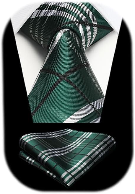 HISDERN Mens Ties Plaid Tie and Pocket Square Set Classic Woven Formal Checkered Neckties & Handkerchief Wedding Party