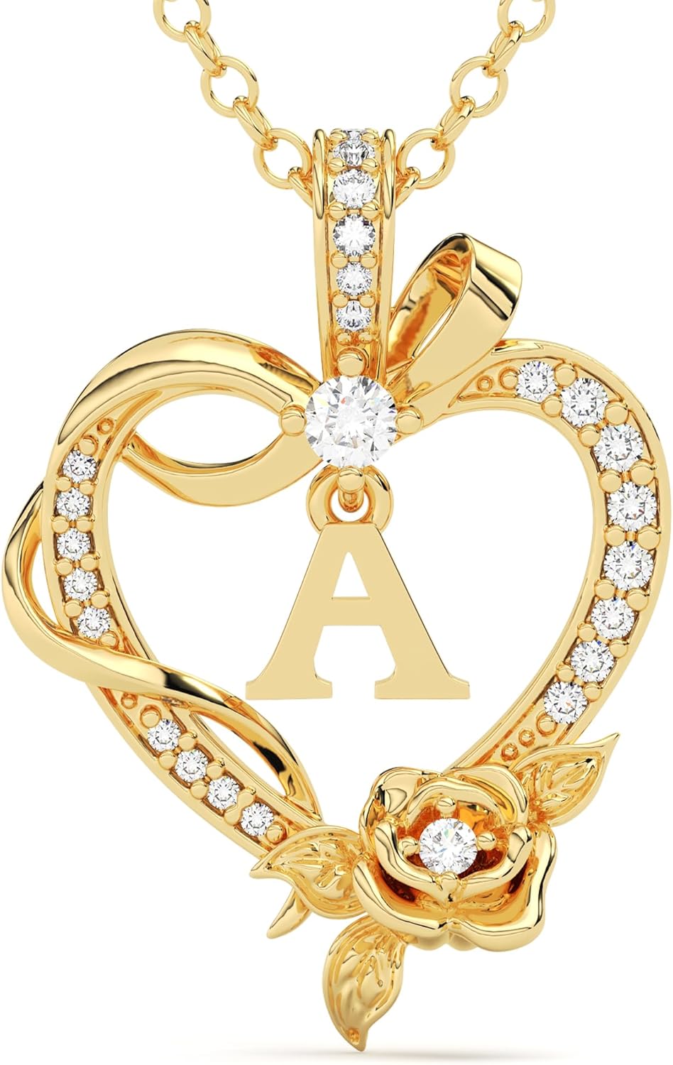 Initial Heart Necklace Gift for Women – 14K Gold Plated Rose Pendant, Personalized Letter Jewelry for Wife, Mom, Grandma, Sister – Birthday, Anniversary for Her