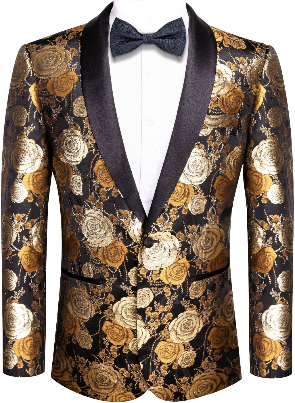 Hi-Tie Stylish Men Suit Jacket Blazer Shawl Lapel One Button Slim Fit Long Sleeve Jacket Tuxedo Party Dinner