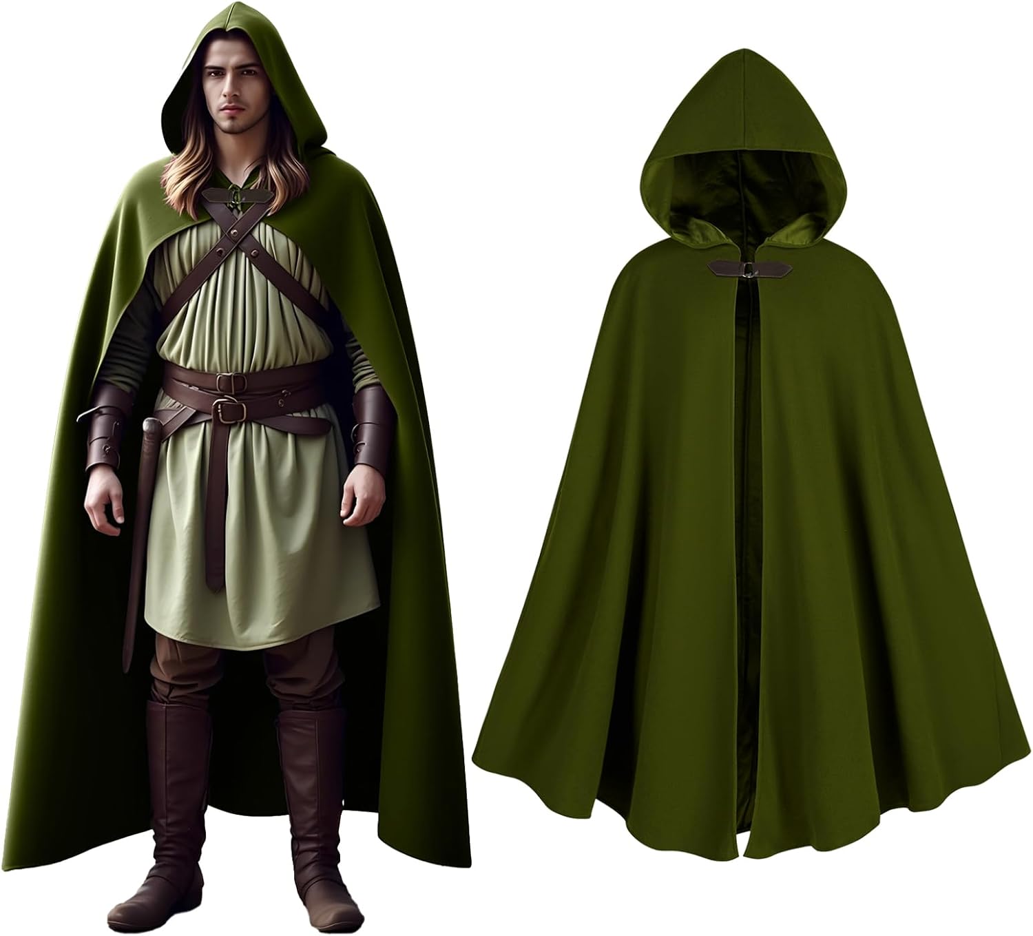 Men's Medieval Hooded Cape Velvet Cloak Renaissance Victorian Vintage Capelet Halloween Sorcerer Cosplay Costume