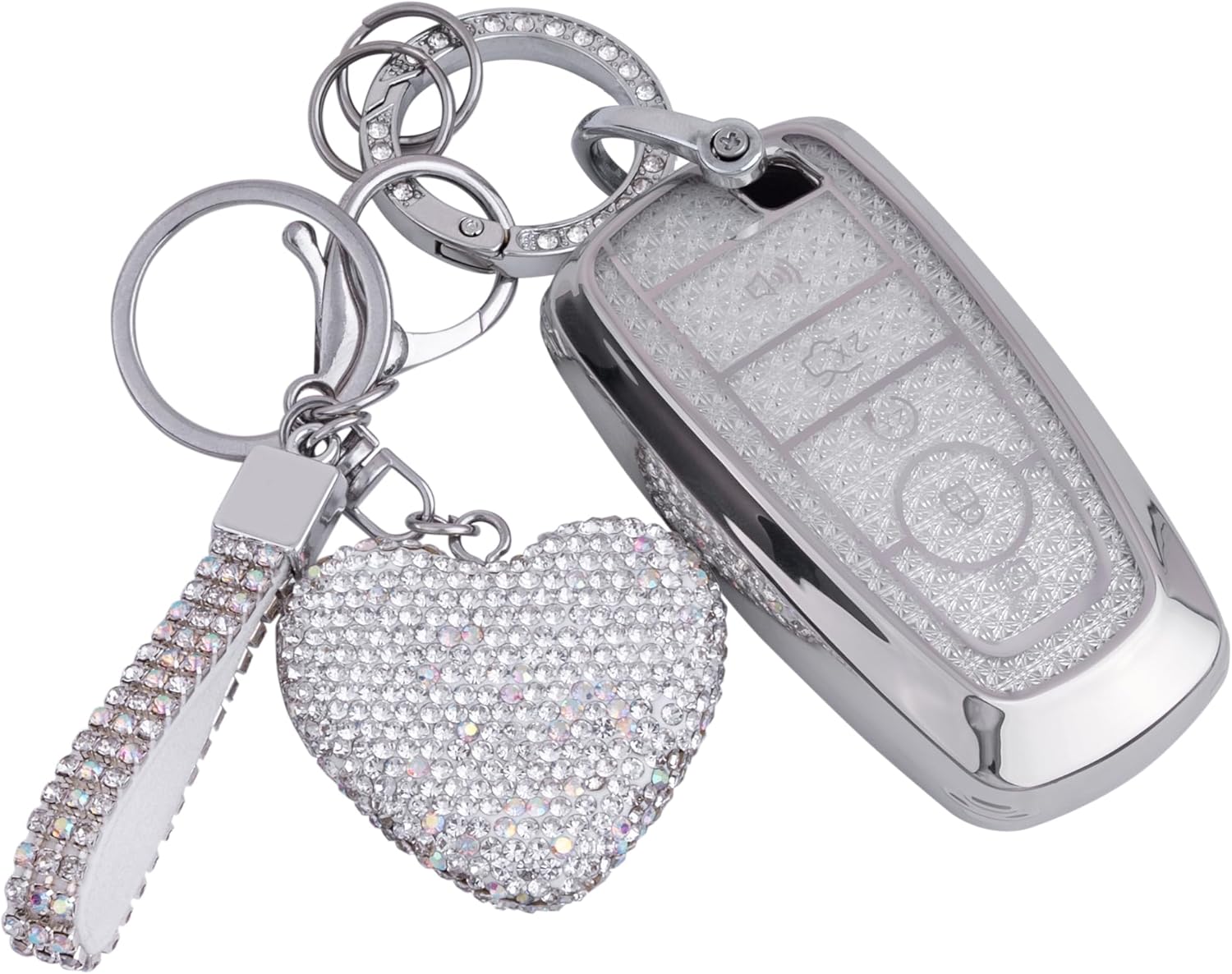 for Ford key fob cover with Diamond Bling Keychain, Car Accessories Shell for Explorer Fusion Escape Edge Expedition Bronco F150 F250 F350 F450 F550 Maverick Mustan,Silver Clear
