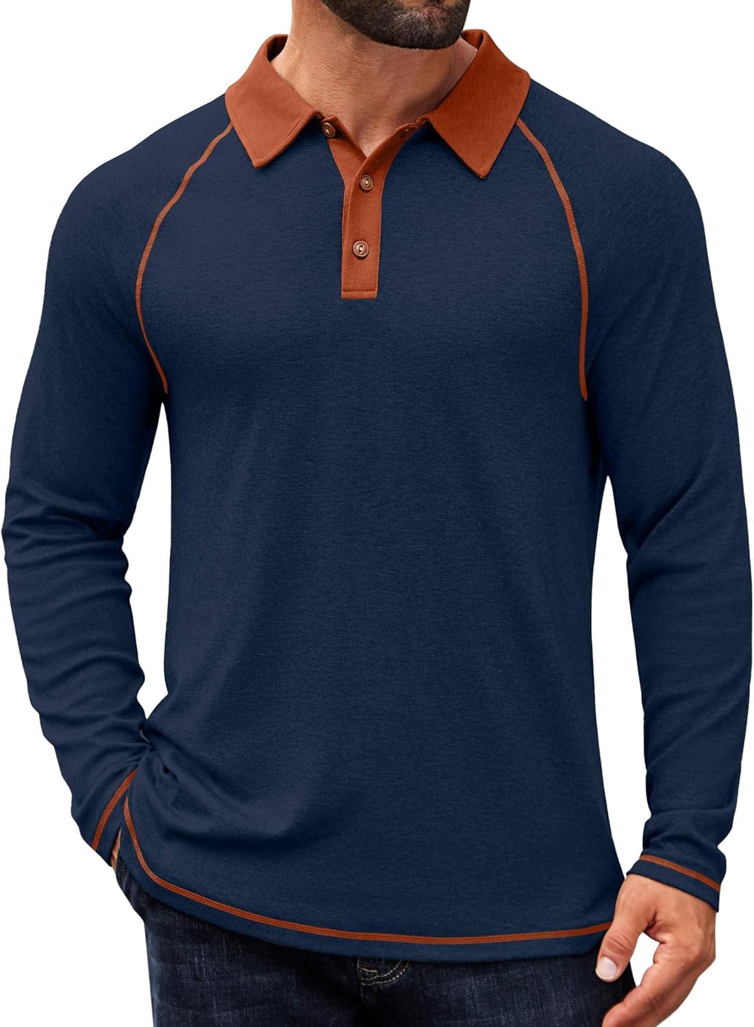 COOFANDY Mens Long Sleeve Polo Shirts Casual Button Collared Shirts Raglan Golf T Shirt