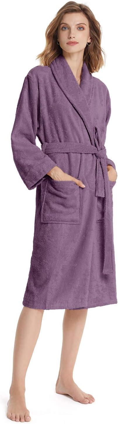 SIORO Women Cotton Terry Cloth Robes, Soft Plush Spa Bathrobe with Shawl Collar, Towel nightgrown Bath for Pool, Gym, Travel