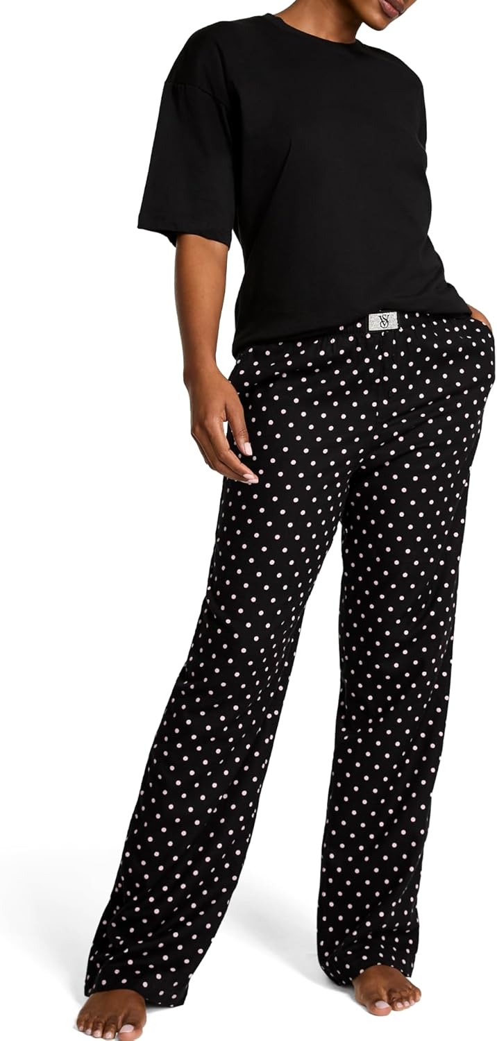 Victoria's Secret Tee Pajama Set, Short Sleeve Cotton T Shirt and Flannel Pants, Sleepwear for Women (XS-XXL)