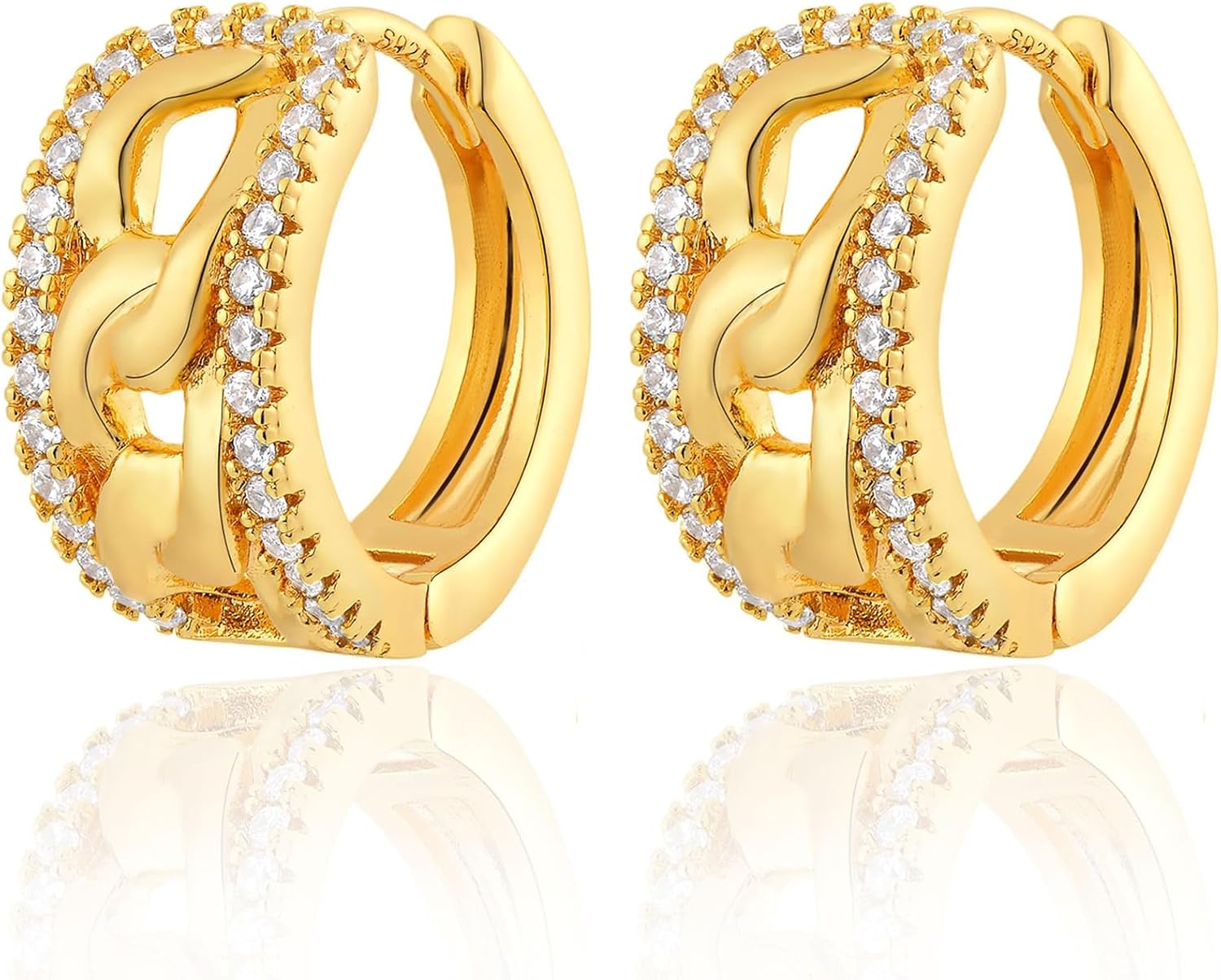 BENEIGE Women Hoop Huggie Earrings 14K Gold Plated Cubic Zirconia Earrings Simple Boho Earrings Handmade Hypoallergenic Jewelry Gifts