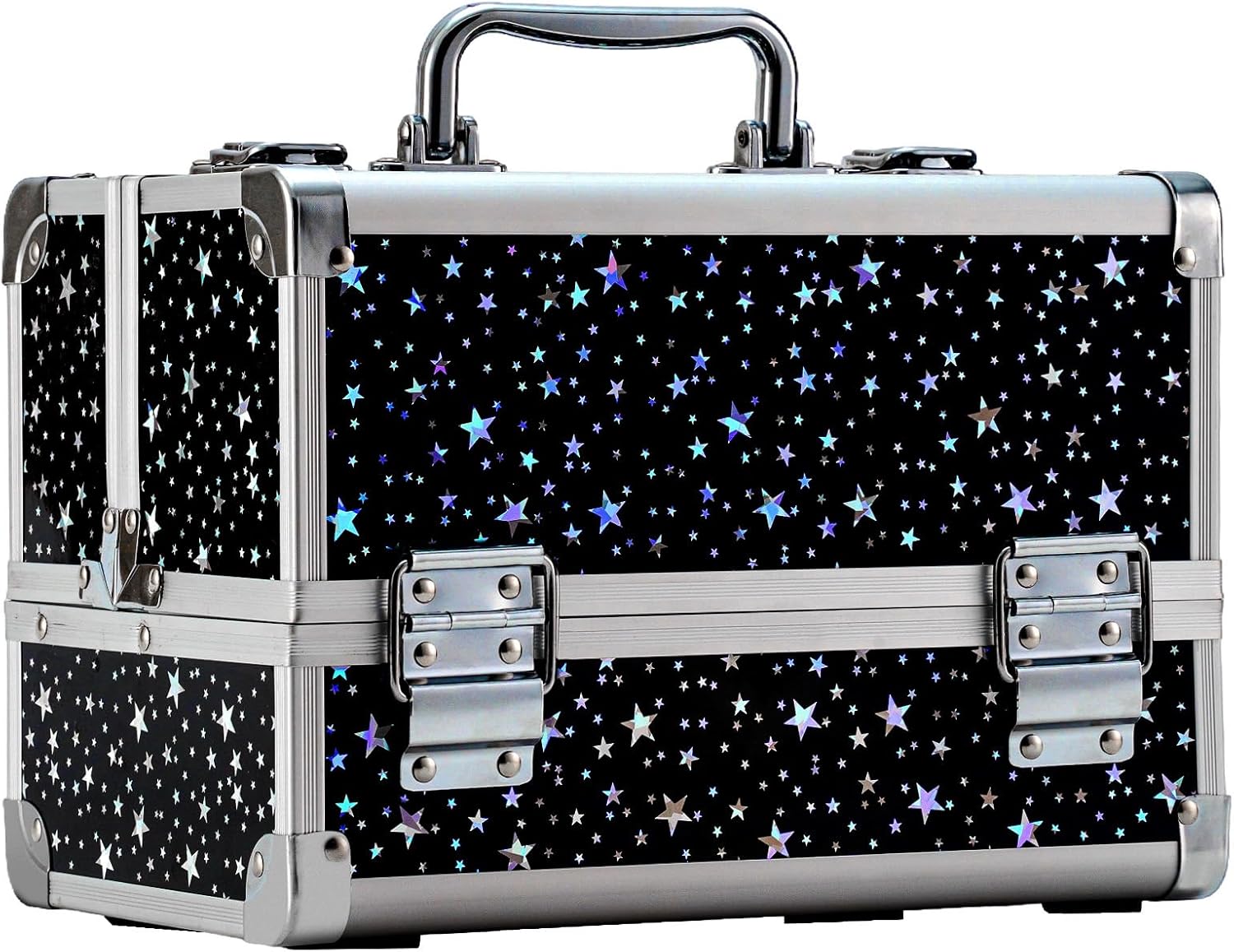 Leeora&Leekoo Makeup Train Case Cosmetic Box Portable Makeup Case Organizer 2 Trays Makeup Storage with Mirror for Cosmetologist Aesthetic Supplies Nail Tech Traveling Makeup Box (Flashing Star)