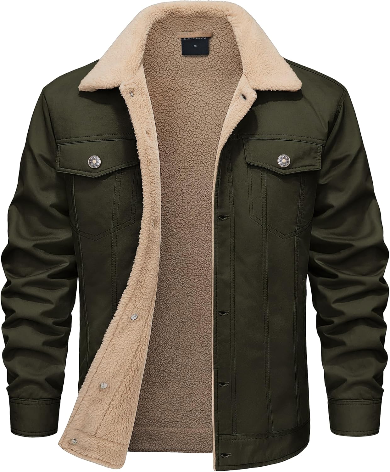 Men's Sherpa Jacket Fleece Lined Cotton Winter Cargo Coat Thick Thermal Warm Trucker Jacket with Multi Pockets