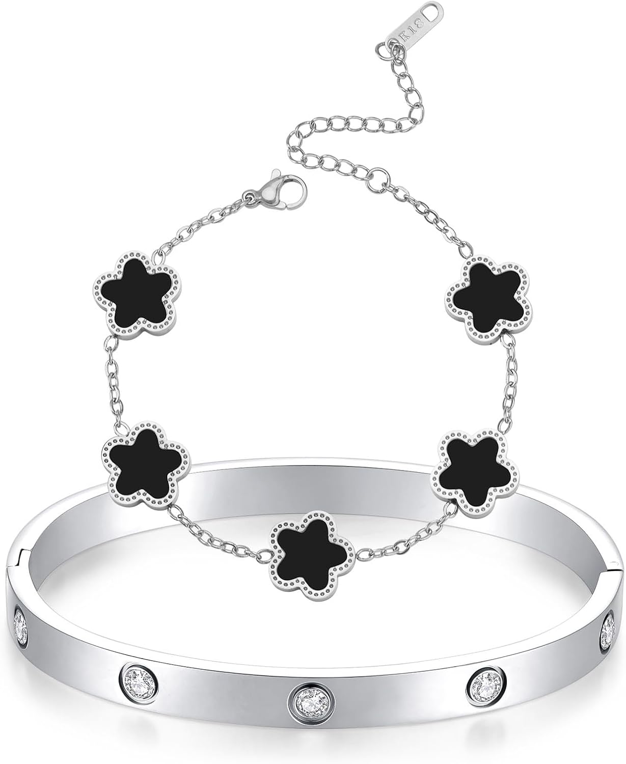 18K Gold Plated Clover Bracelet Love Bangle Set for Women Black and White Stack Bangle Clover Bracelet Fashion Simple Lucky Bracelets for Women Trendy Gifts