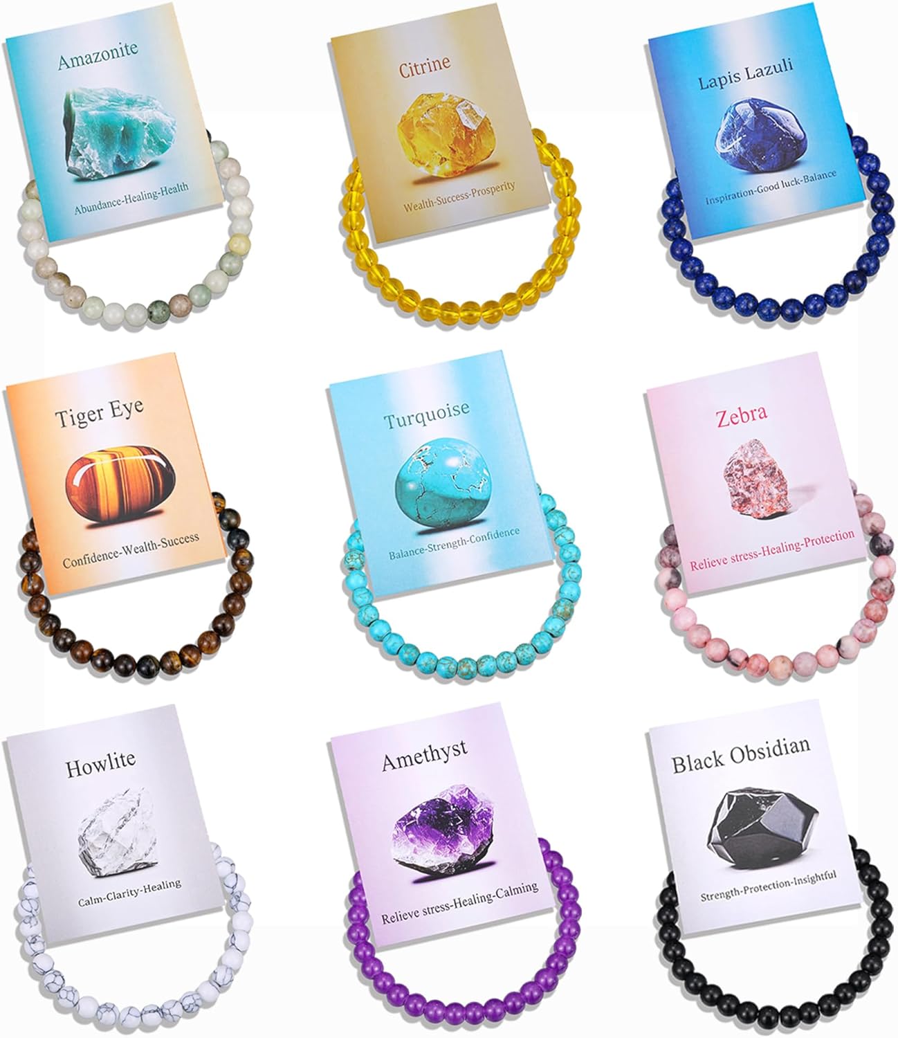 BROCC 9pcs Beaded Bracelets for Women Natural Healing Crystal Stone Bracelet Unisex Adjustable Stretch Handmade 6mm Beaded Jewelry Set