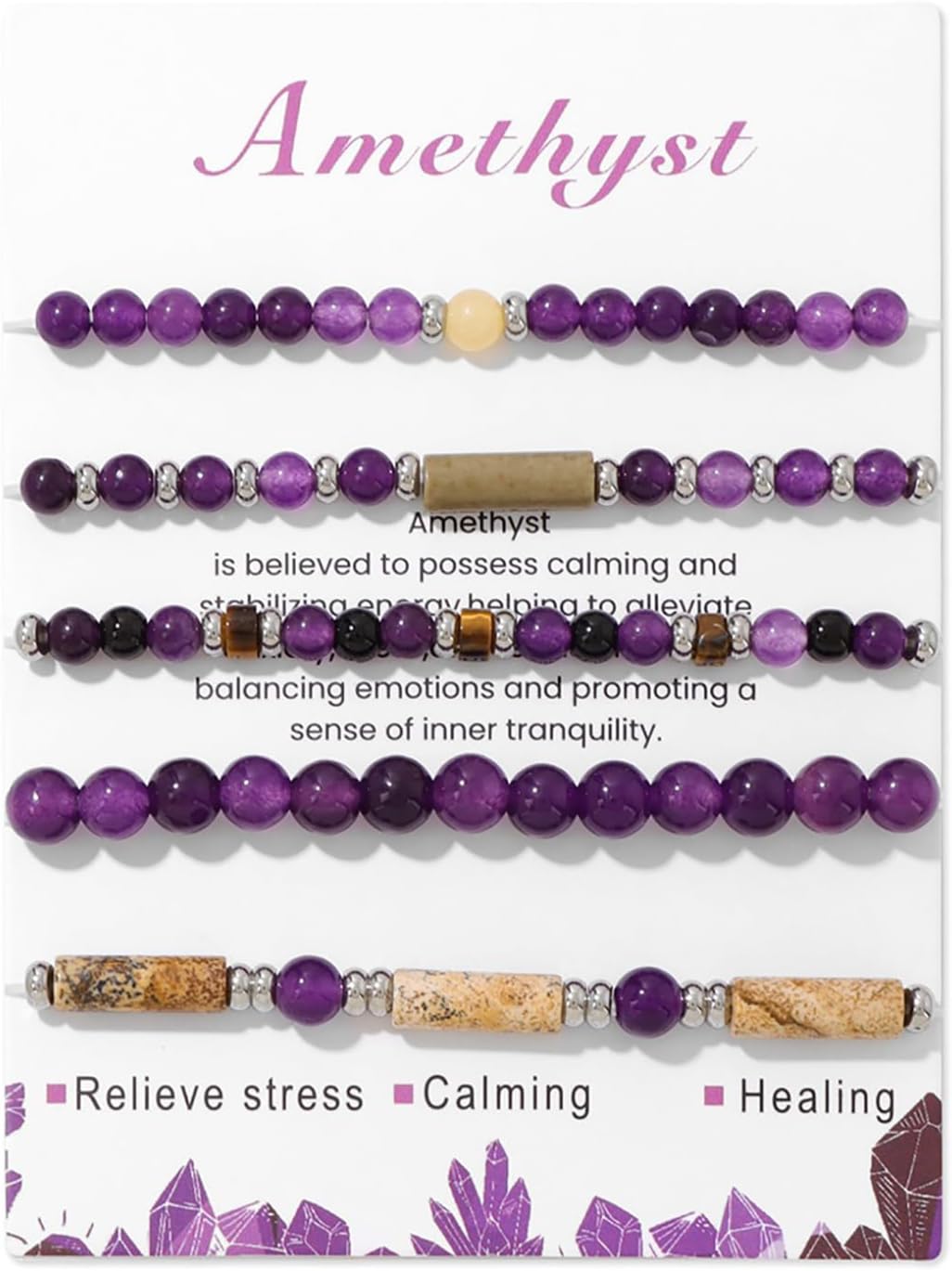 5Pcs Crystal Bracelet for Women Spiritual Natural Stone Bracelet Set Stackable Beaded Bracelets Healing Crystal Bracelet Gemstone Bead Bracelet Beaded Stretch Bracelets for Women