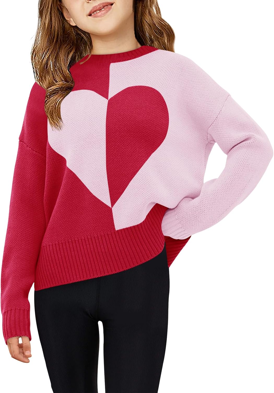 Haloumoning Girls Heart Sweater Kids Cute Color Block Knit Sweaters 7-14 Years