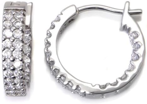 Sterling Silver Cubic Zirconia In/Out CZ Hoop Earrings