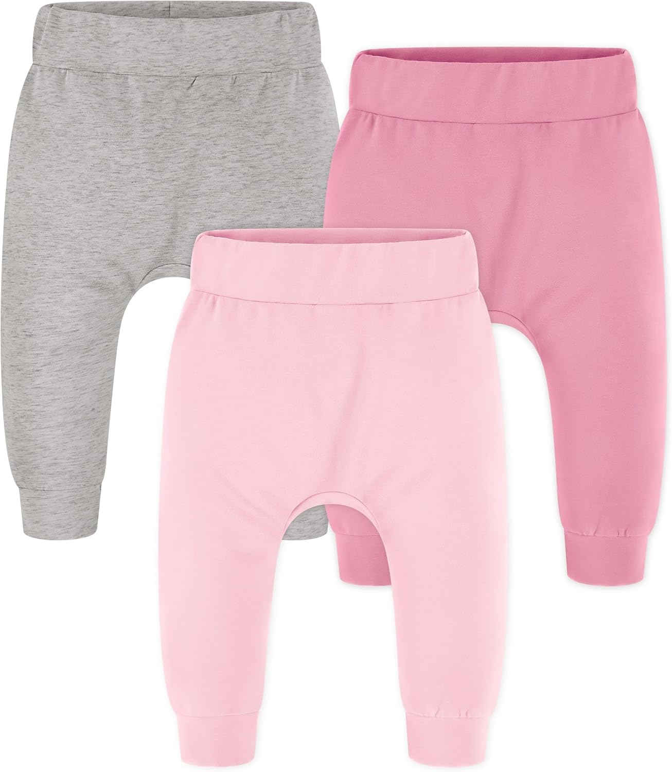 Yoofoss Baby Pants Organic Cotton Baby Boy Girl Sweatpants, 3 Pack Pull On Infant Toddler Jogger for 0-18 Months