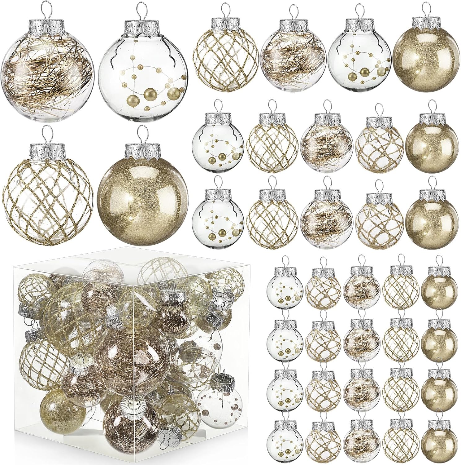 Civaner 4 Sizes 43 Pcs Champagne Christmas Clear Ball Ornaments Set Shatterproof Plastic Glitter Hanging Decorative Balls Decor Christmas Baubles for Valentine's Day Holiday 2026 New Year Decors