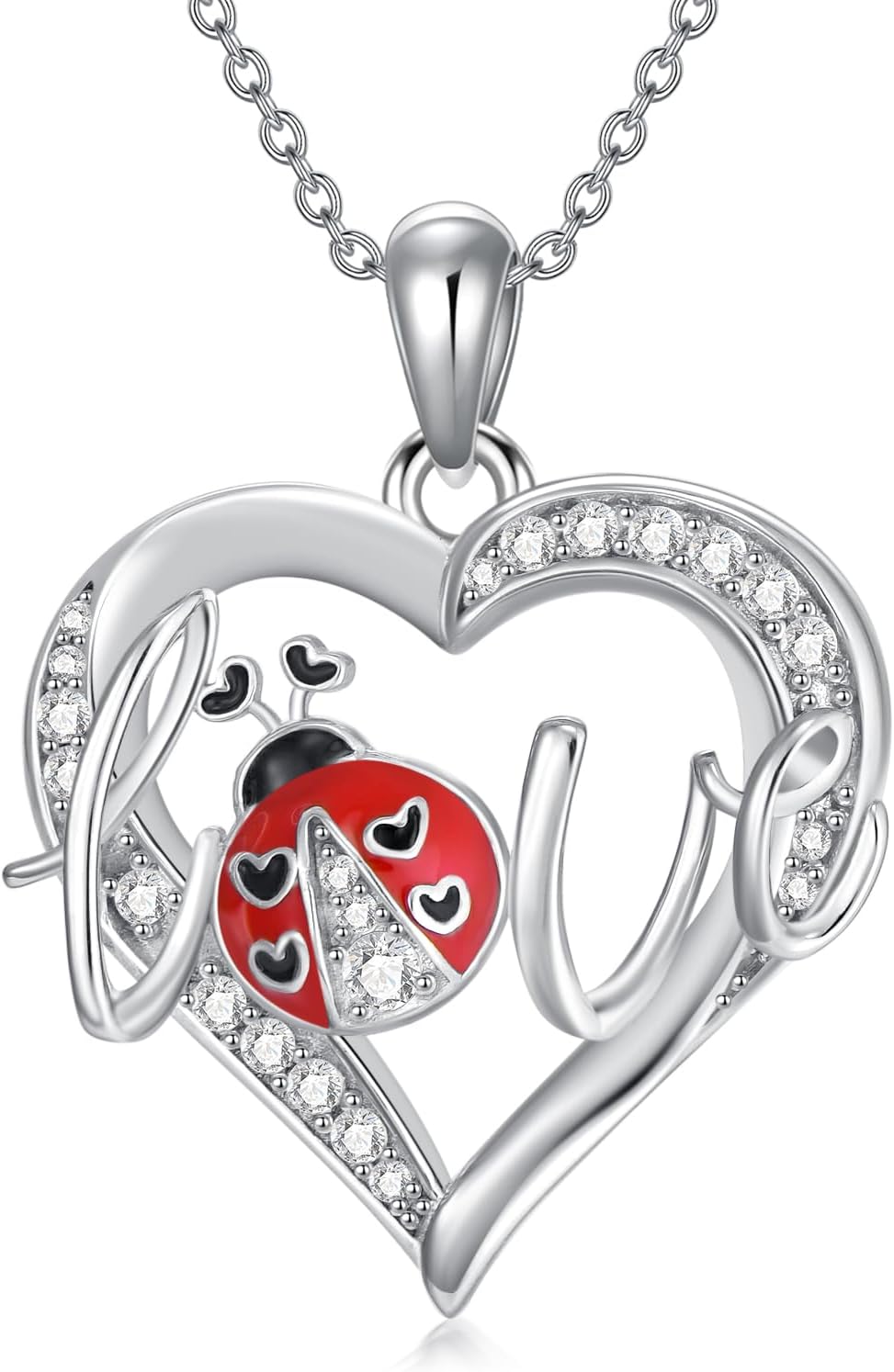 S925 Sterling Silver Dragonfly/Butterfly/Ladybug Necklace Dainty Pendant Necklace Birthday Valentine's Day Gift for Women Her