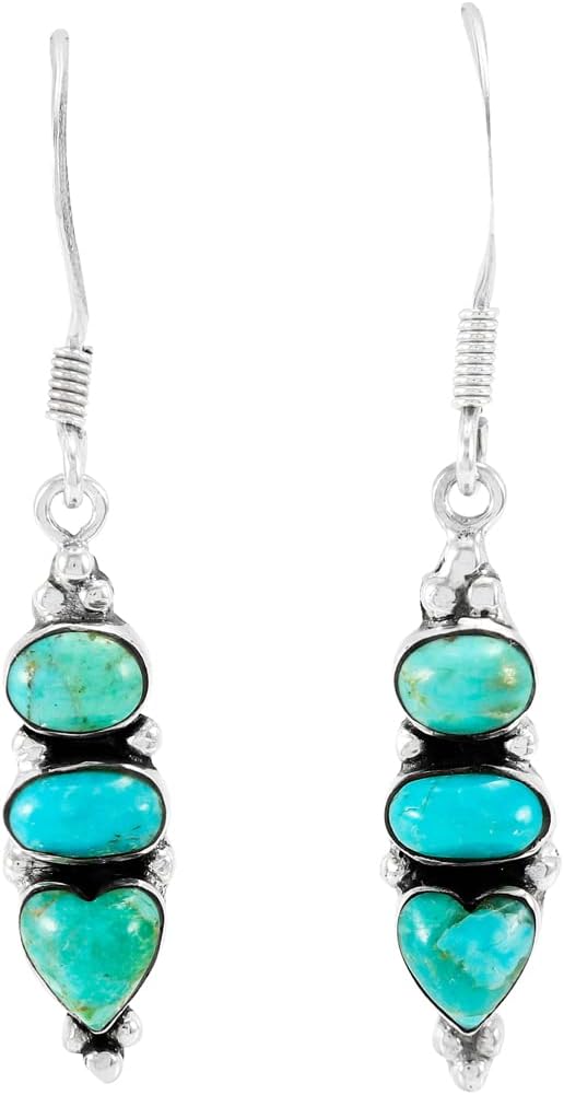 Turquoise Earrings 925 Sterling Silver & Genuine Gemstones (Select style) (3-Stone Drops)