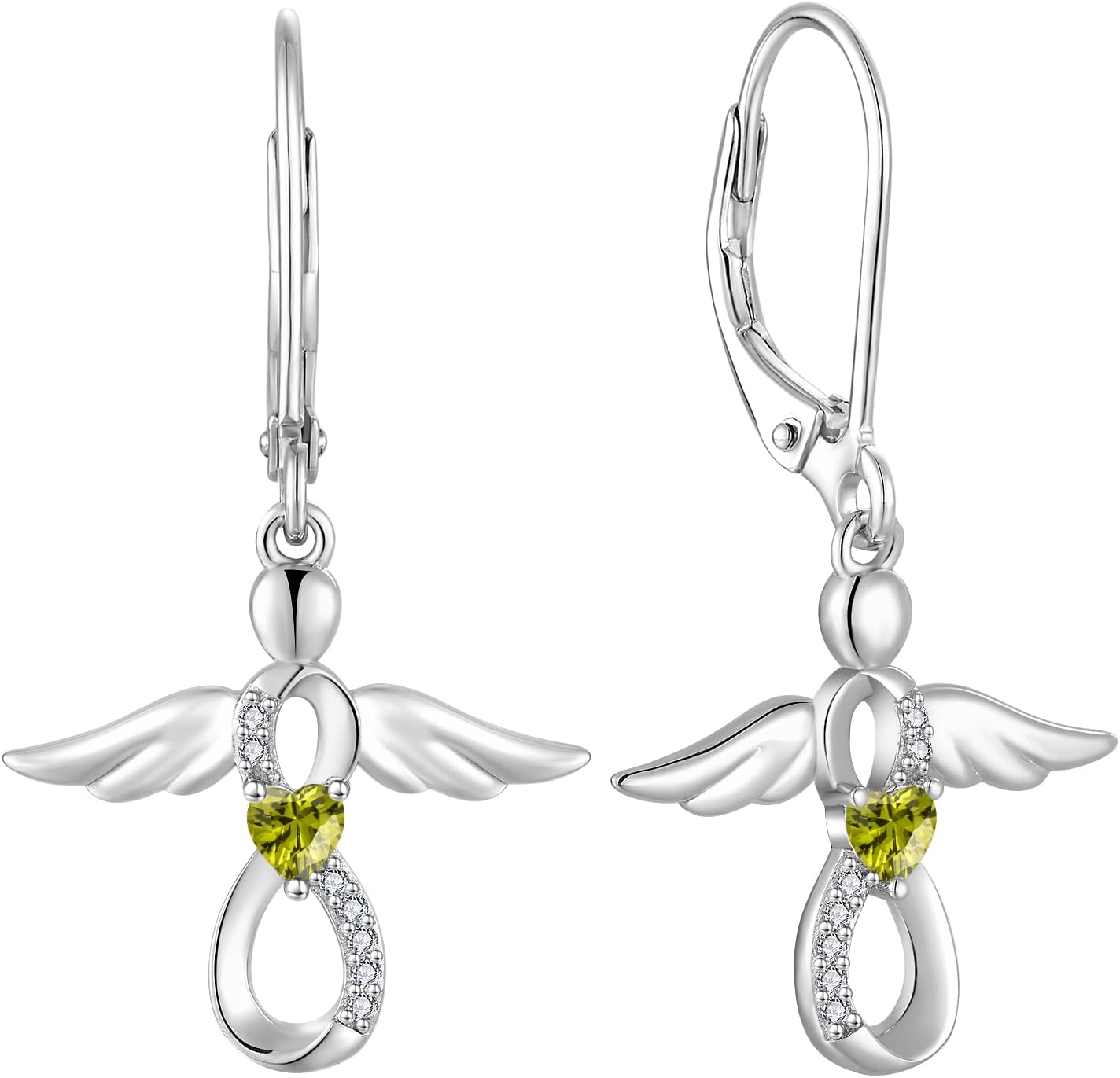 FJ Guardian Angel Dangle Drop Earrings 925 Sterling Silver Infinity Leverback Birthstone Earrings Jewelry for Women