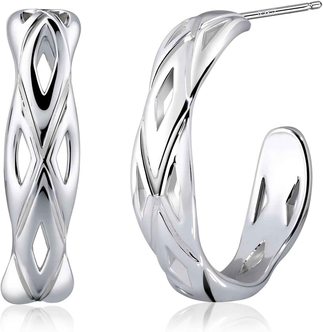 Hollow Silver Hoop Earrings for Women, Hypoallergenic Sterling Silver Stud