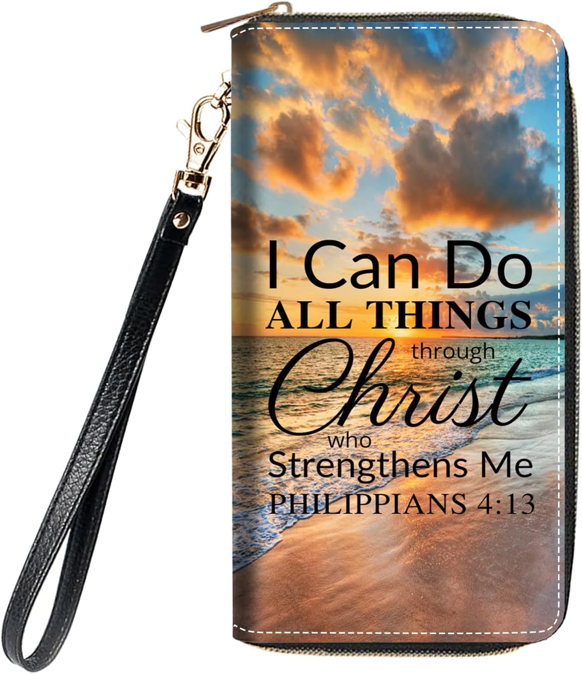 Women's Large Capacity Wallet, Portable PU Leather Zipper Wallet for Smart Phone/Card/Coin/Cash, Multifunctional Clutch Wallet with Removable Wristlet Strap, Bible Verse Philippians 4-13