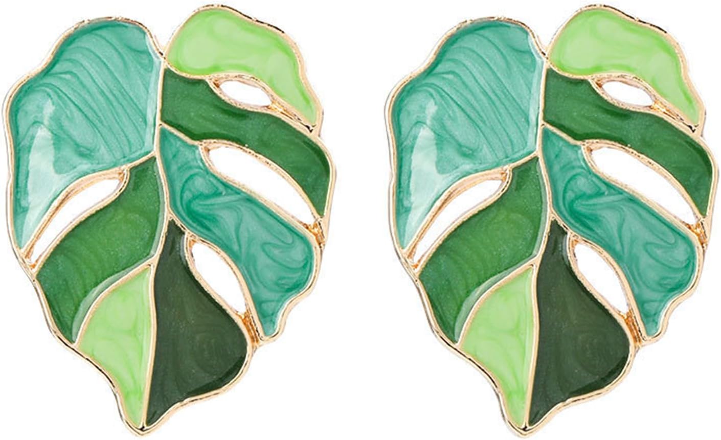 MALOYANVE Palm Leaf Stud Earrings for Women African Natural Enamel Monstera Colorful Leaf Elegant Funny Statement Plant Pendant Earrings Accessories Jewelry Gifts