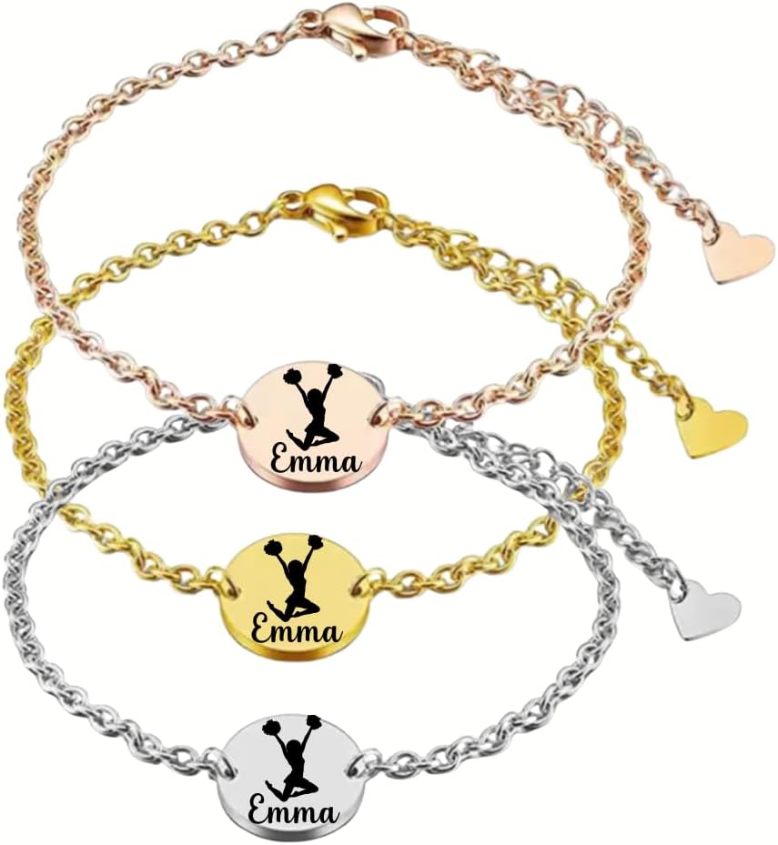 Cheer Bracelet, Personalized Cheer Name Engraving Jewelry, Custom Engraved Cheer Bracelet for Women, Teens, and Girls, Cheerleader Accessories