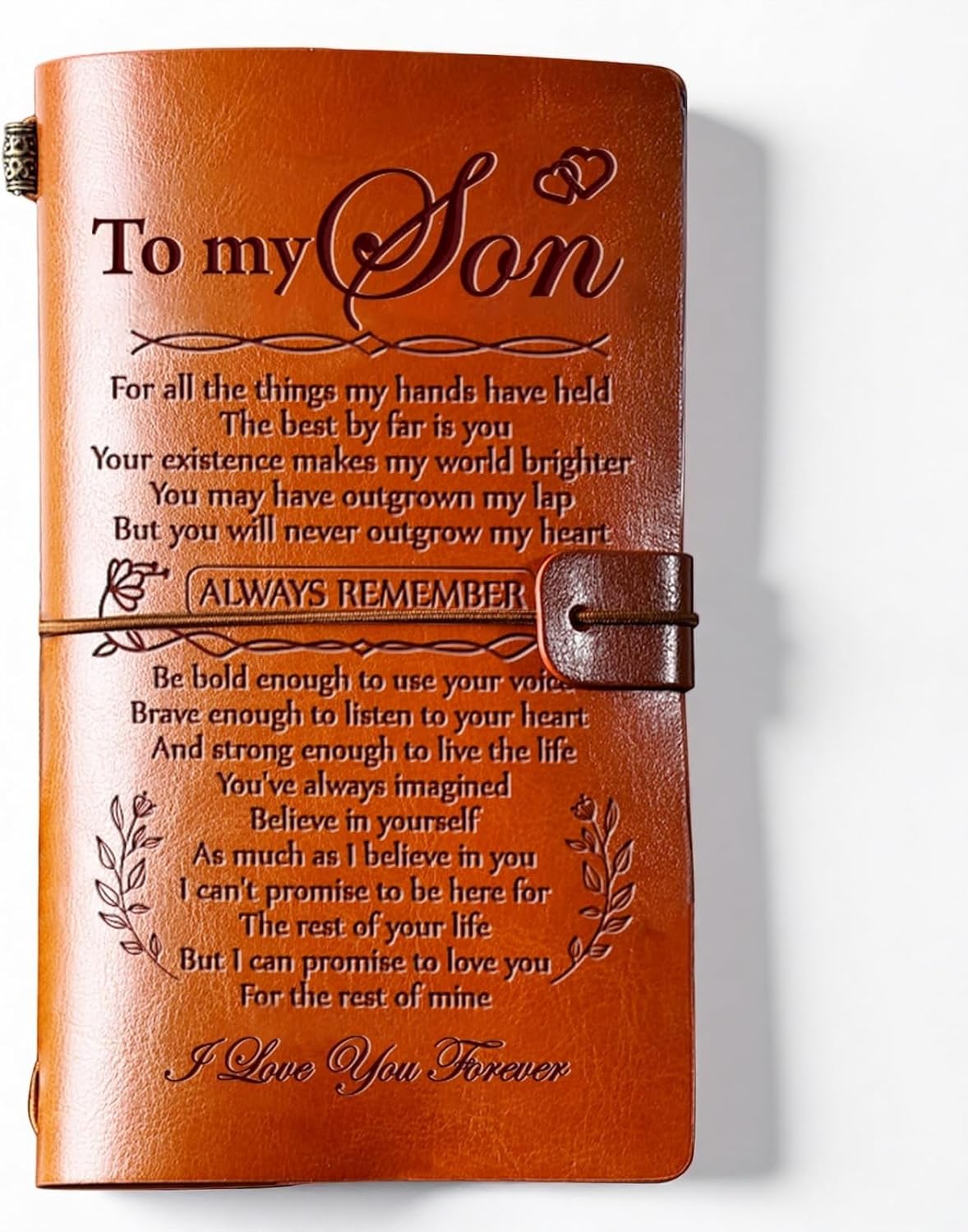 - Thoughtful Gift: This personalized leather journal is a perfect gift for your son, whether it's for christmas day,graduation, birthday, travel, wedding, or any special occasion. It features a heartfelt message that reads "I'll always be with you, never forget how much I love you".