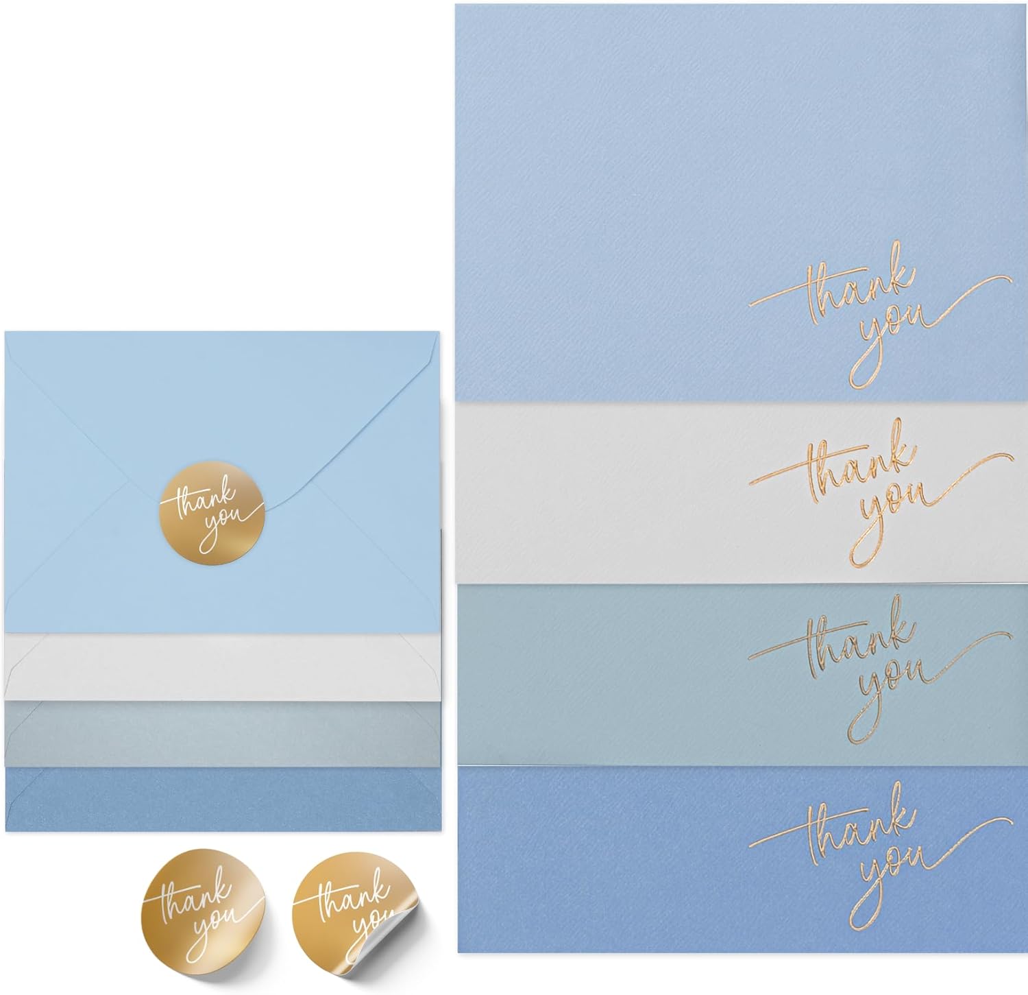 Gold Foil Thank You Cards - Bulk Pack of 40, 5x3.5 Inch with Matching Stickers & Envelopes (Blue) Textured Surface for a Unique Feel - Suitable for Baby Shower, Wedding, Small Business, Graduation