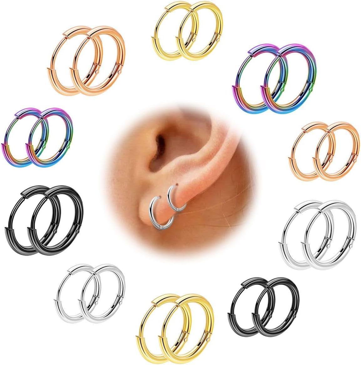 REVOLIA 10 Pairs 20G Surgical Steel Huggie Hoop Earrings for Women Men Hypoallergenic Cartilage Helix Hoop Earrings Lobes Hinged Sleeper Earrings Hoops 6-14mm