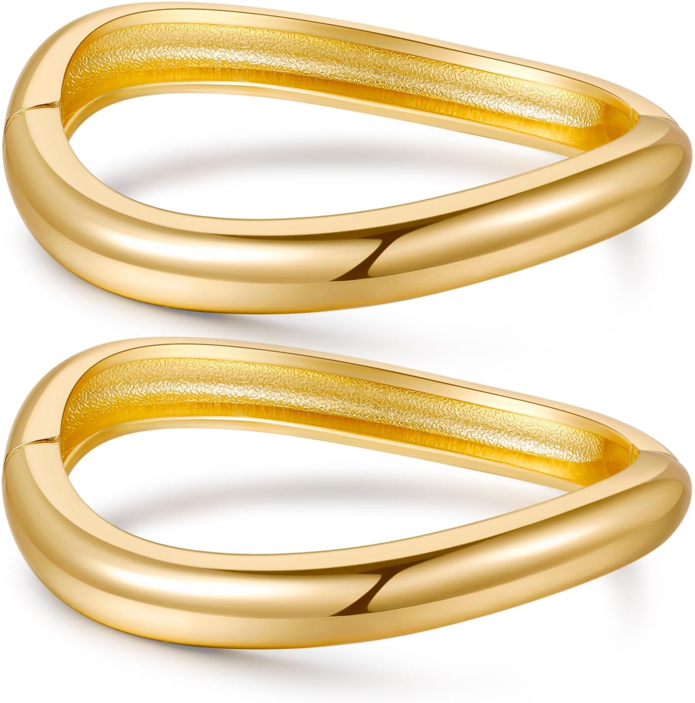 2pcs Gold Bangle Bracelets for Women, Trendy Hinged Cuff Open Wide Chunky Gold Bracelet Stack Arm Cuff Jewelry for Women