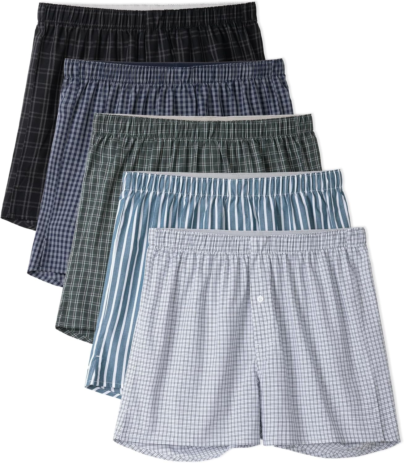 DAVID ARCHY Woven Cotton Boxers for Men Classic Men's Underwear Loose Breathable & Comfortable Boxer Shorts 3 or 5 Pack