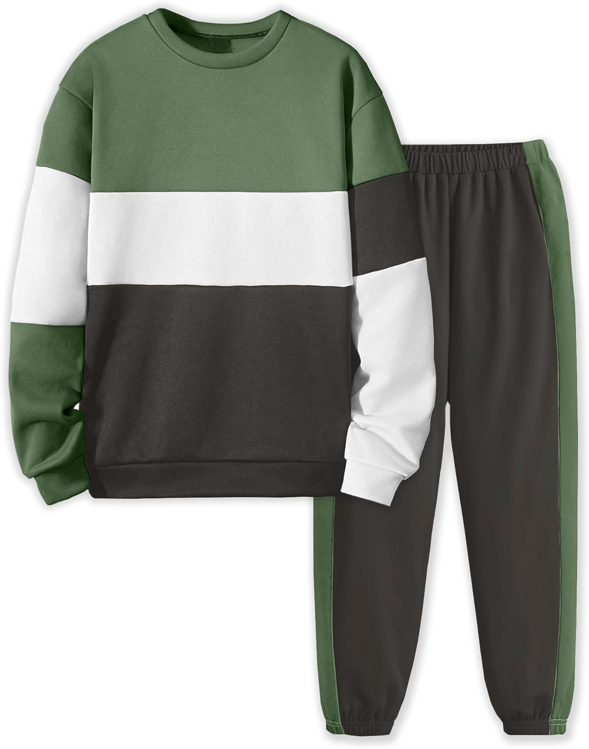 Boys Outfits Long Sleeve Color-blocked Sweatshirt Top and Pants 2PCS Clothes for Boys 10-12 Winter Outfits