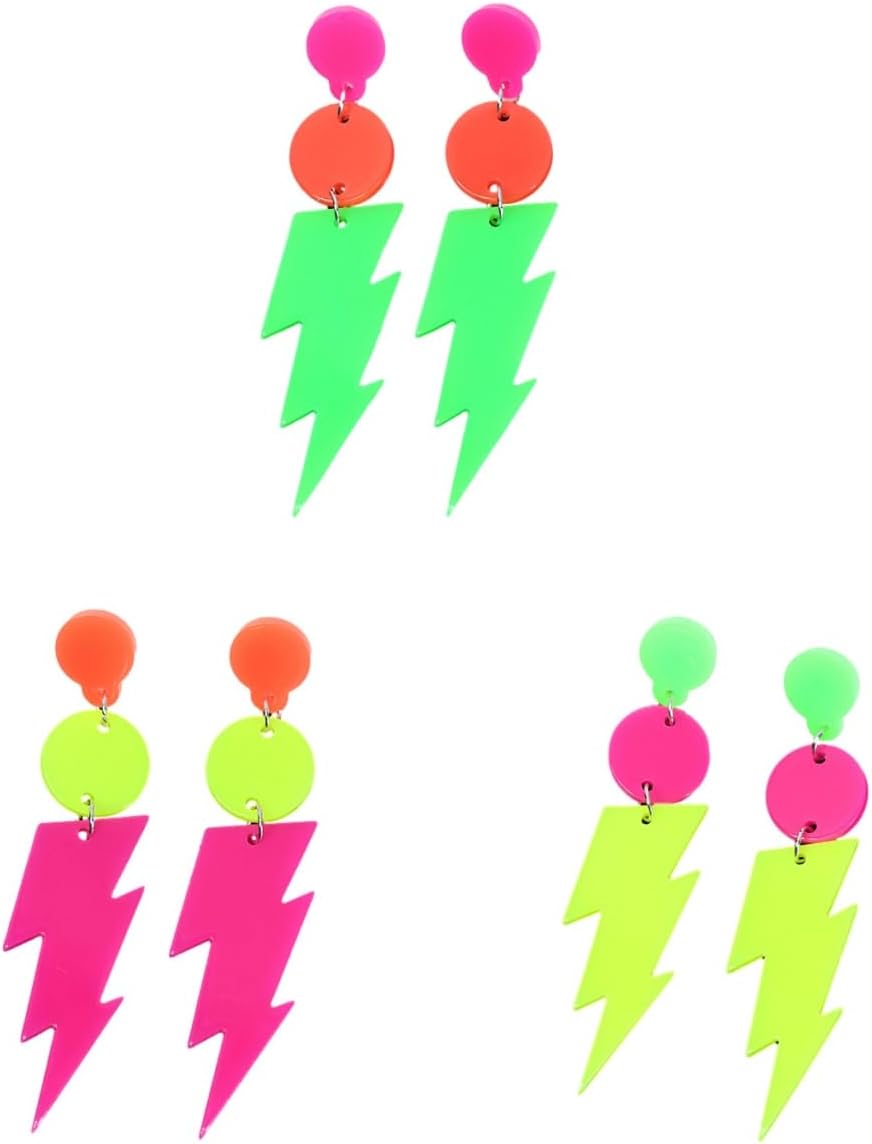 Pingyongchang 3 Pairs 80s 90s Neon Earrings Cute Colorful Lightning Acrylic Dangle Drop Earrings for Women 80's 90's Outfit Glow Party Accessories Costume Cosplay Holiday Jewelry Gift