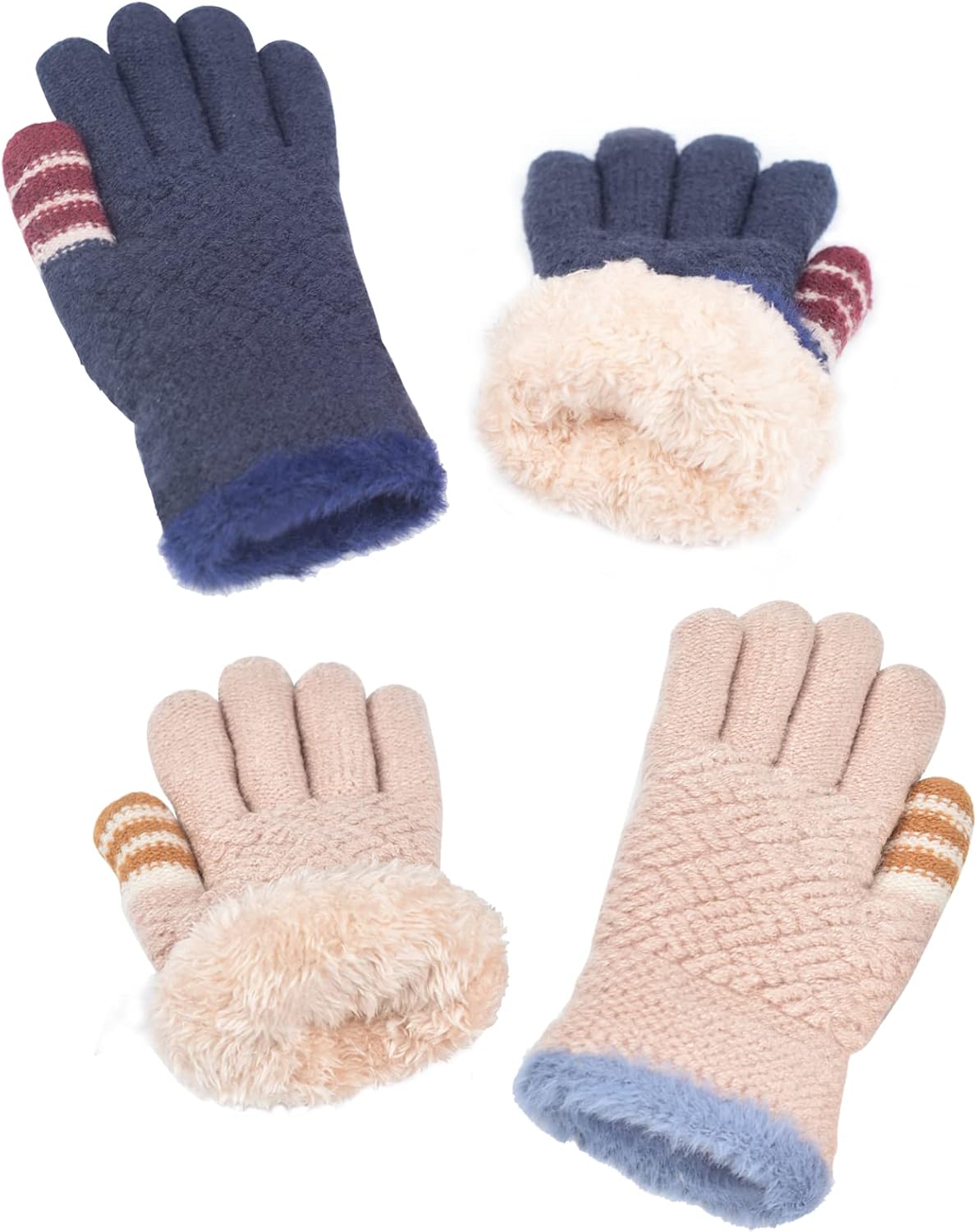 Winter Gloves for Boys Girls - Kids Warm Knit Thermal Cable Knitted Gloves Wool Fleece Lined Mittens for Cold Weather