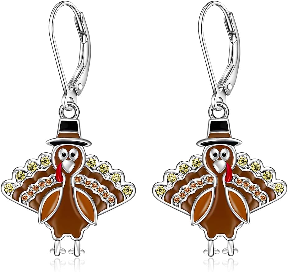 Thanksgiving Earrings Turkey Earrings for Women Sterling Silver Fall Thanksgiving Day Turkey Dangle Earring Jewelry Gift