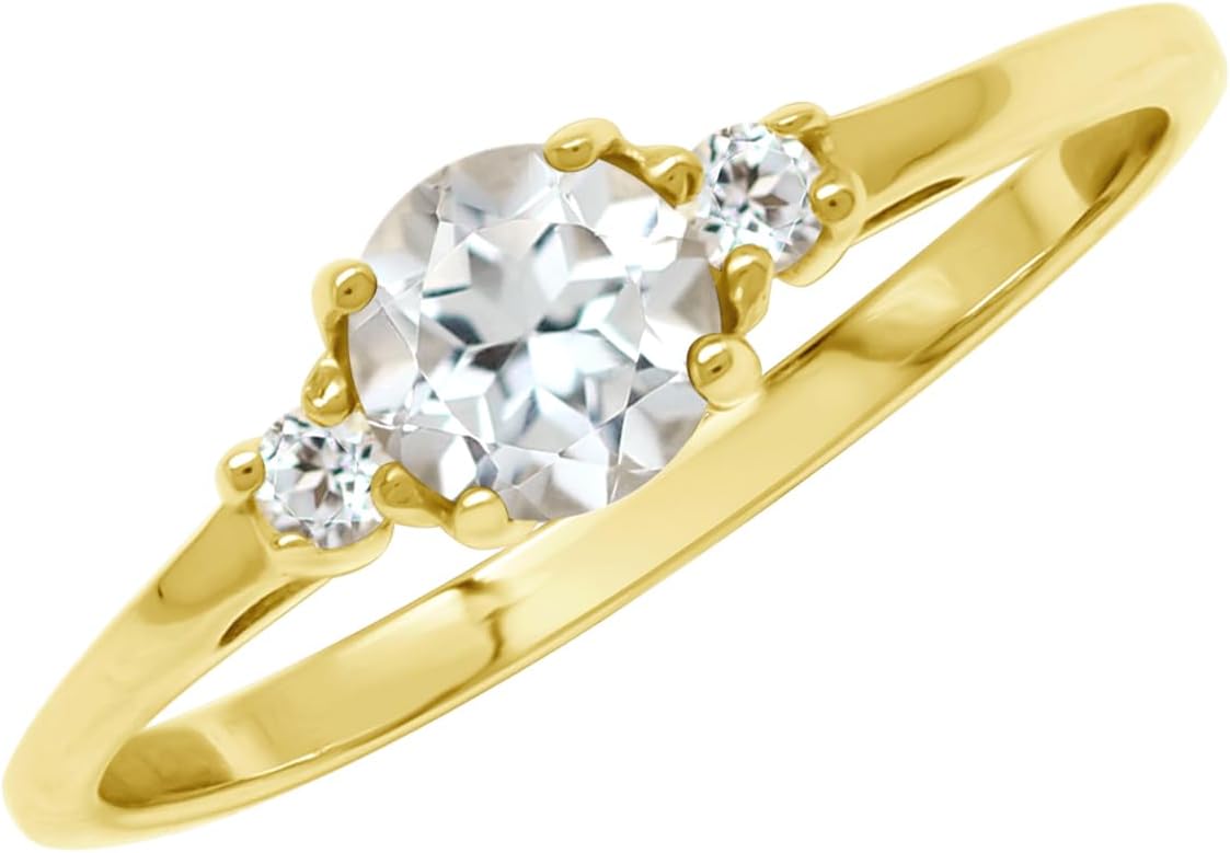 Silvershake Petite Design Round Shape Gemstone Birthstone White Gold Plated or Yellow Gold Plated 925 Sterling Silver Solitaire Promise or Engagement Ring Jewelry for Women