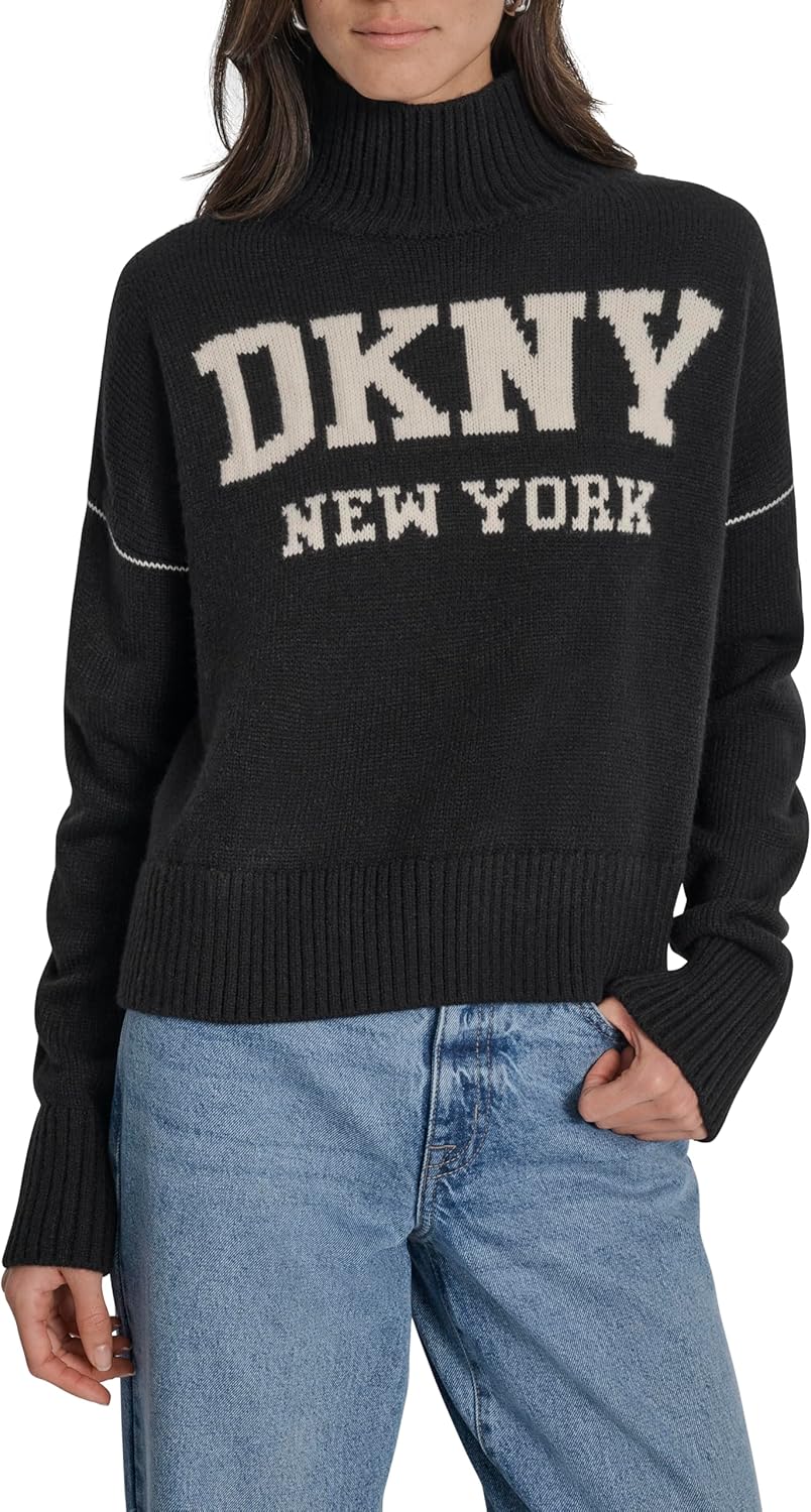 DKNY Womens Long Sleeve Athletic Fit Logo Mock Neck Sweater