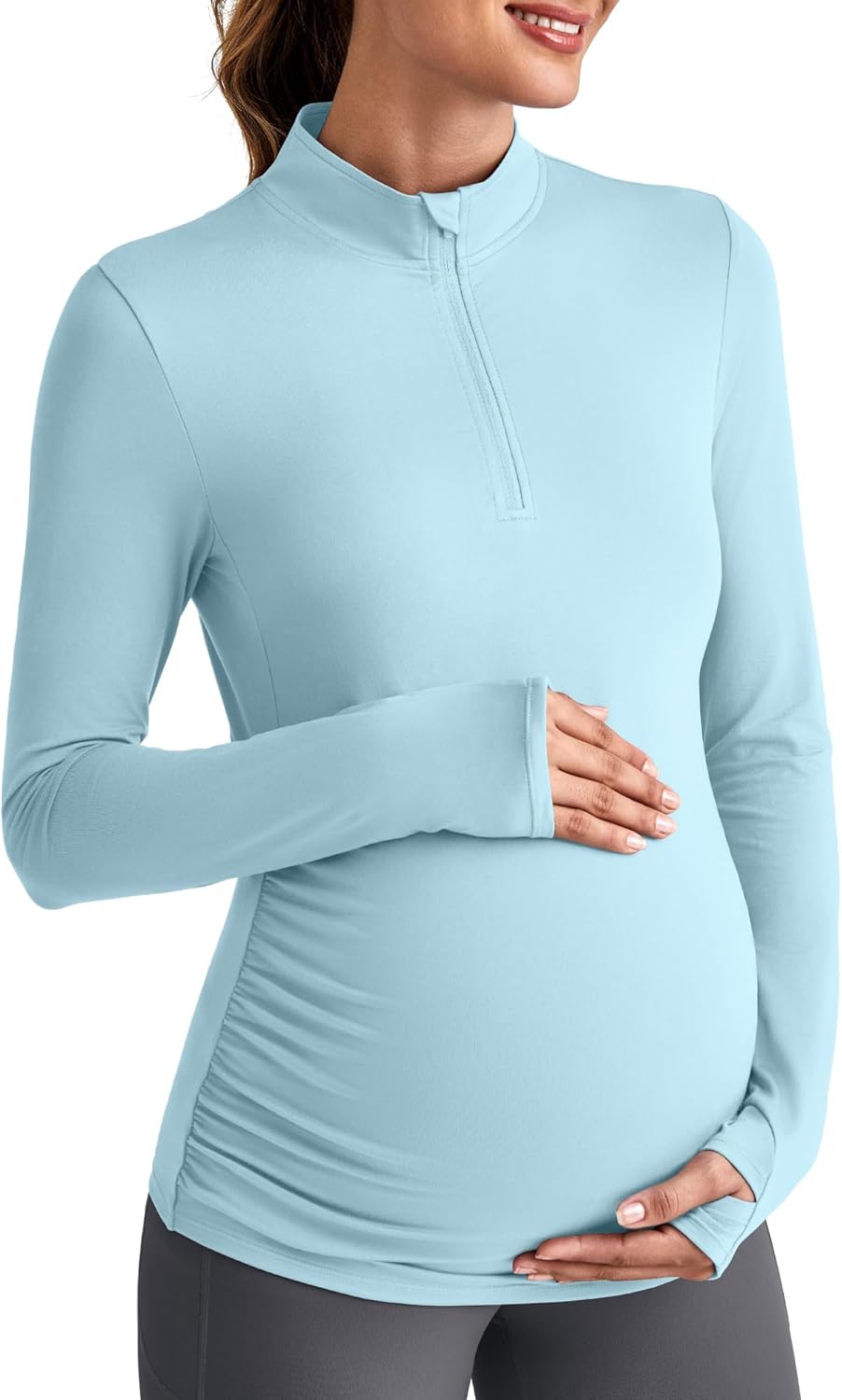 G4Free Maternity Rash Guard Long Sleeve with Thumbholes Side Pleats Pregnancy Workout Tops UPF 50+ Hiking Sun Shirts Soft(Light Blue,XXL)