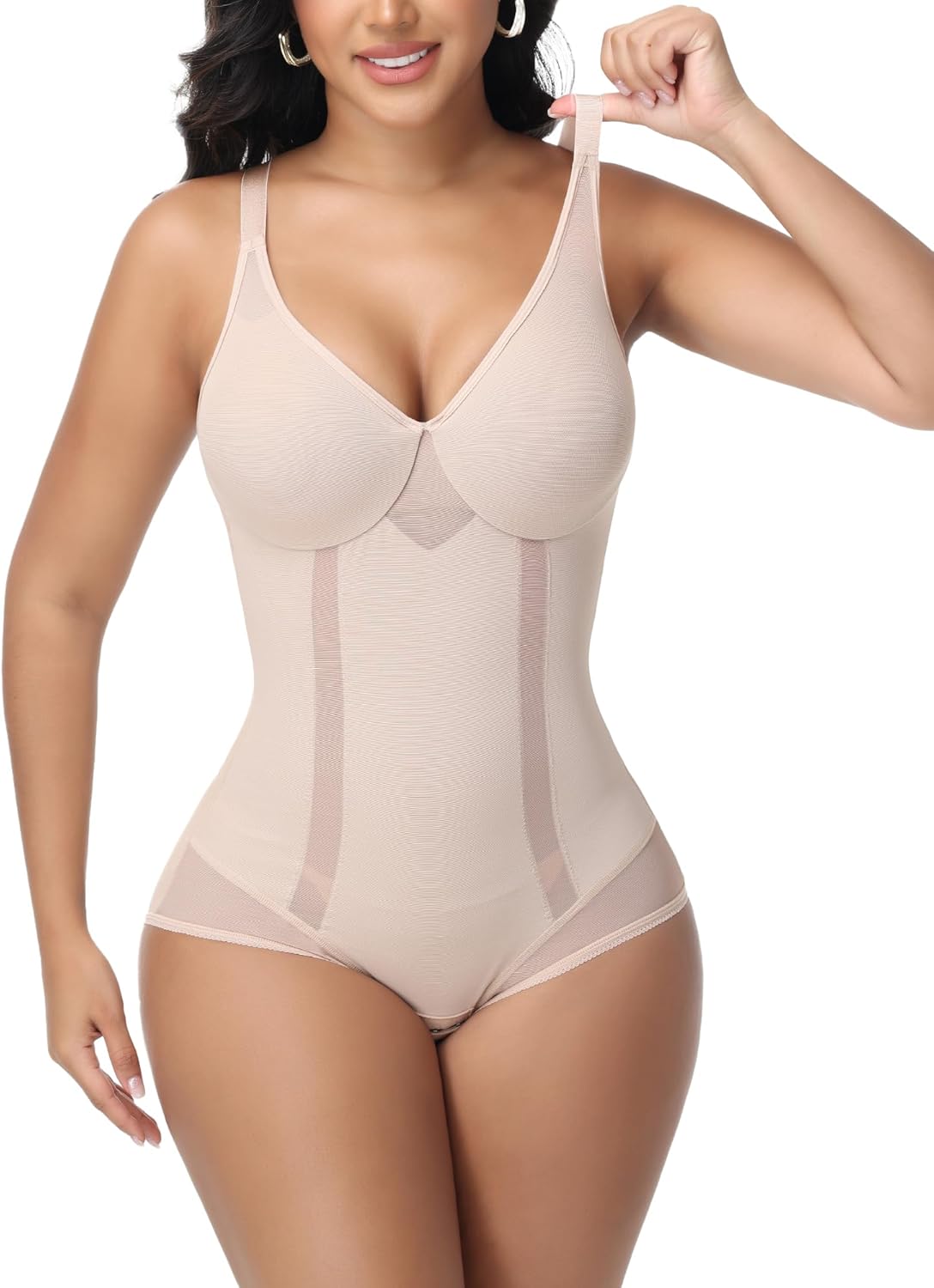 Shapewear Bodysuit with Underwire for Women Deep V Neck Faja Body Shaper Mesh Slimming Bodysuit