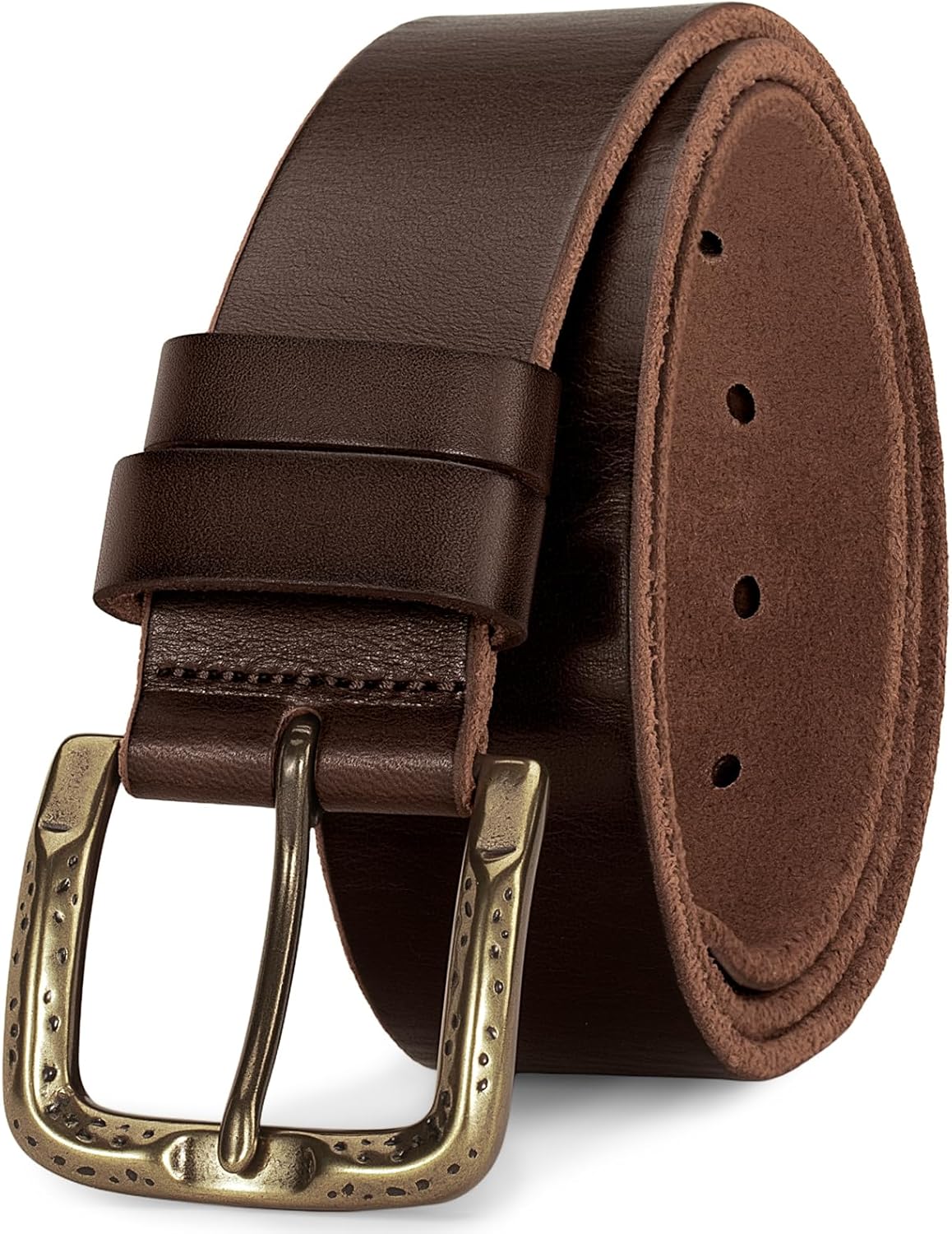 Men's Everyday Casual Belt - 1.5 Inch Full Grain Genuine Leather with Brass Buckle