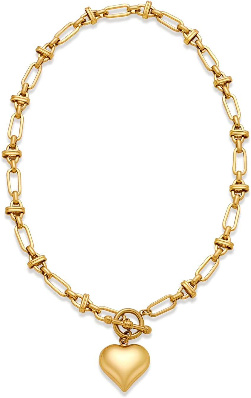 CLASSYZINT Gold Toggle Necklace Heart Pendant Chain Necklace Statement Charm Necklace Chain Link Necklace