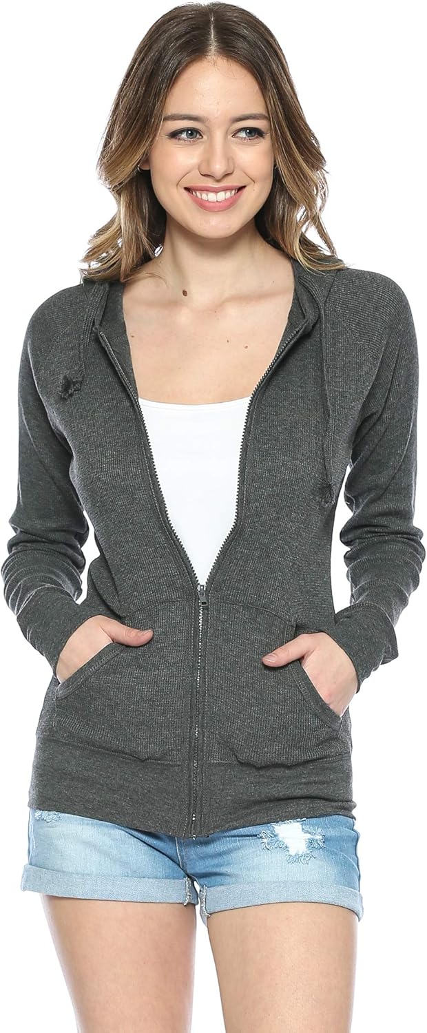 Urban Look Women's Casual Light Weight Thermal Zip Up Hoodies