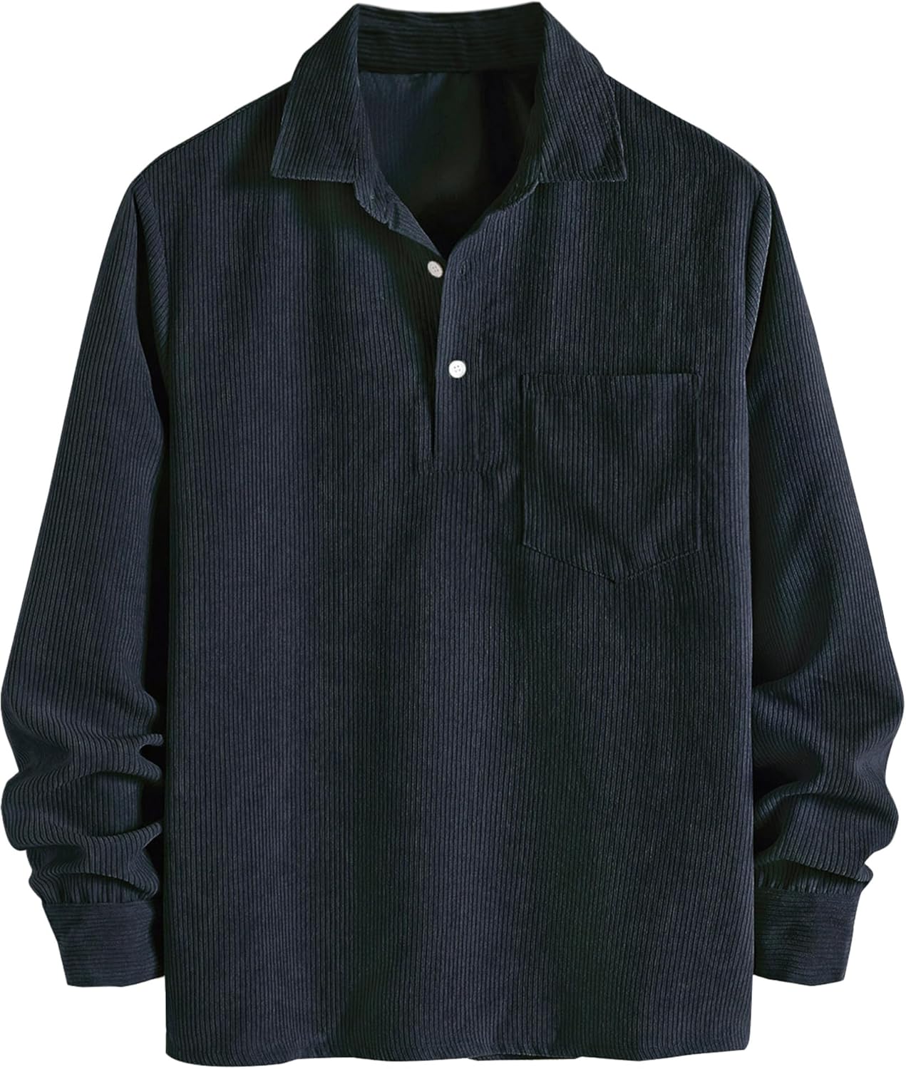 ZAFUL Corduroy Shirt for Men Pullover Long Sleeve Polo Shirt Casual Work Collared Shirt with Pocket Half Button Up Top